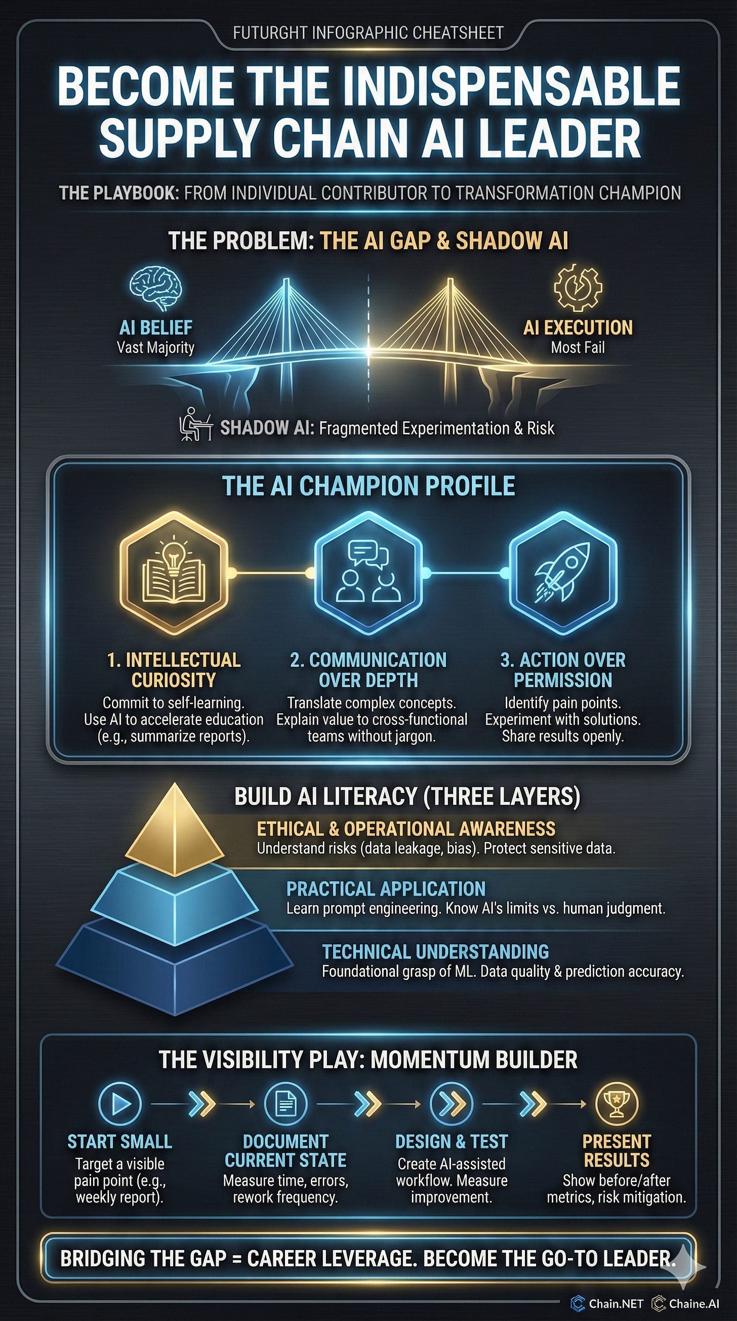 The supply chain professionals getting promoted right now share a common trait. They saw the AI adoption gap before leadership did. They built literacy while others waited for training programs. They demonstrated value while others debated risks.